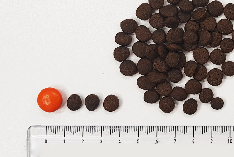 아래는 아투 사료의 알갱이 크기를 비교한 사진입니다.